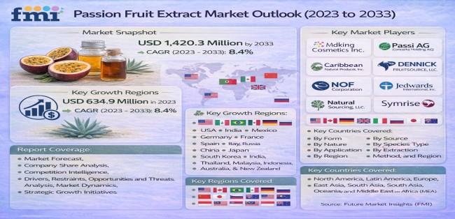 Between 2023 and 2033, the passion fruit extract market is expected to benefit from converging trends in functional nutrition, sleep health, and natural cosmetics. Growth across North America, Europe, East Asia, and South Asia will be supported by expanding cultivation, pharmaceutical validation, and consumer demand for plant-derived bioactives.