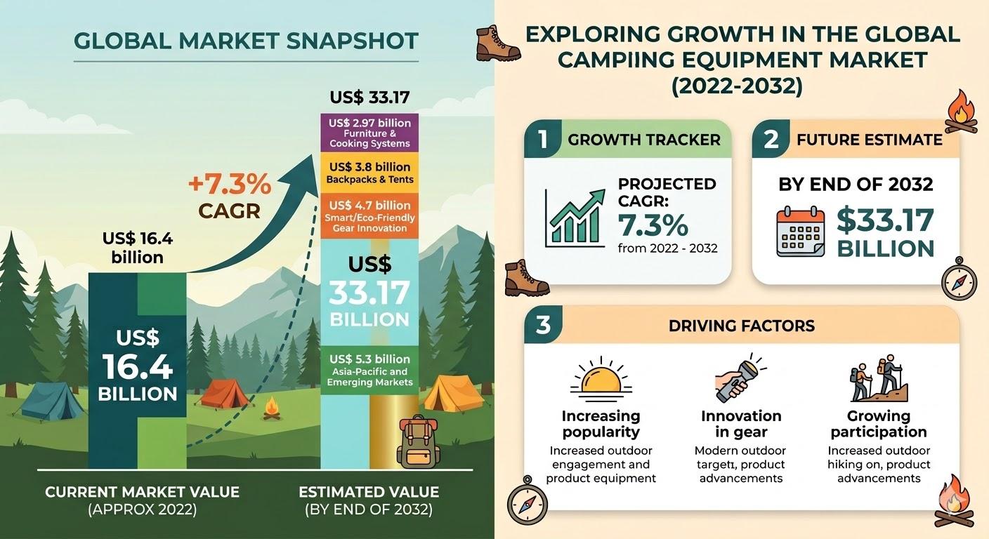 The global camping equipment market is undergoing a fundamental transformation, evolving from a niche outdoor pursuit into a cornerstone of the multi-trillion-dollar wellness economy. According to recent industry analysis, worldwide consumption of camping equipment, valued at US$ 16.4 billion in 2022, is on a high-growth trajectory to reach US$ 33.17 billion by the end of 2032.